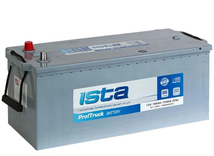 ISTA 190Ач 1250А подойдет для выполнения целого ряда задач грузовых авто: запуска двигателя автомобиля, электропитании при выключенном двигателе (для работы сигнализации и других бортовых элементов), поддержки генератора при высоких нагрузках и т.д.