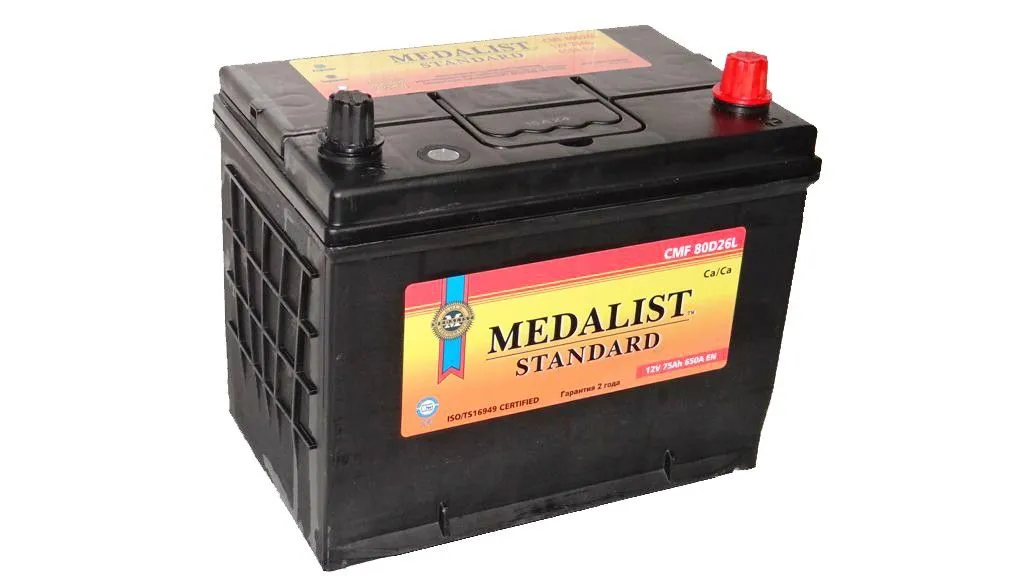 Medalist Standard 80D26L 75Ач 650А подойдет для выполнения целого ряда задач грузовых авто: запуска двигателя автомобиля, электропитании при выключенном двигателе (для работы сигнализации и других бортовых элементов), поддержки генератора при высоких нагрузках и т.д.