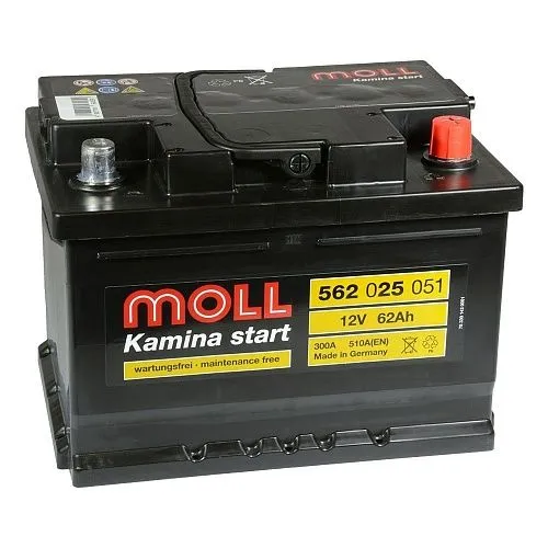 Аккумулятор Moll Kamina Start 62SR низкий 510A (562 025 051) 62Ач 510А, обратная полярность