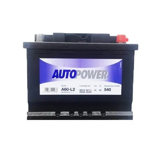 Autopower 60 Ач, пусковой ток 540 А, производства Чехия. Габаритные размеры аккумуляторной батареи составляют 242х175х190 мм по длине, ширине и высоте соответственно. Величина пускового тока 540 А согласно европейскому стандарту, ёмкость батареи составляет 60 Ач, тип токовывода - стандартные клеммы.