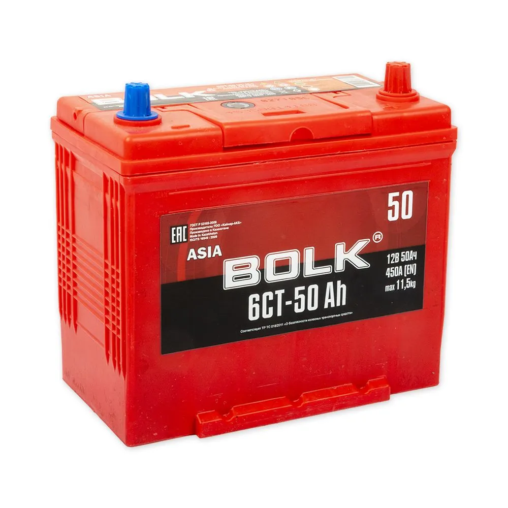 Bolk 50 Ач, пусковой ток 540 А, производства Россия. Габаритные размеры аккумуляторной батареи составляют 236х129х220 мм по длине, ширине и высоте соответственно. Величина пускового тока 540 А согласно европейскому стандарту, ёмкость батареи составляет 50 Ач, тип токовывода - тонкие клеммы.
