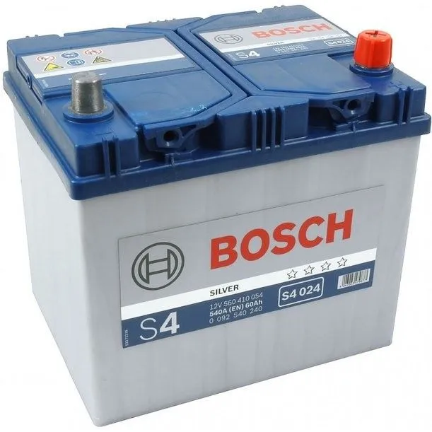 Bosch Silver S4 60 Ач, пусковой ток 540 А, производства Чехия. Габаритные размеры аккумуляторной батареи составляют 230х175х225 мм по длине, ширине и высоте соответственно. Величина пускового тока 540 А согласно европейскому стандарту, ёмкость батареи составляет 60 Ач, тип токовывода - стандартные клеммы.