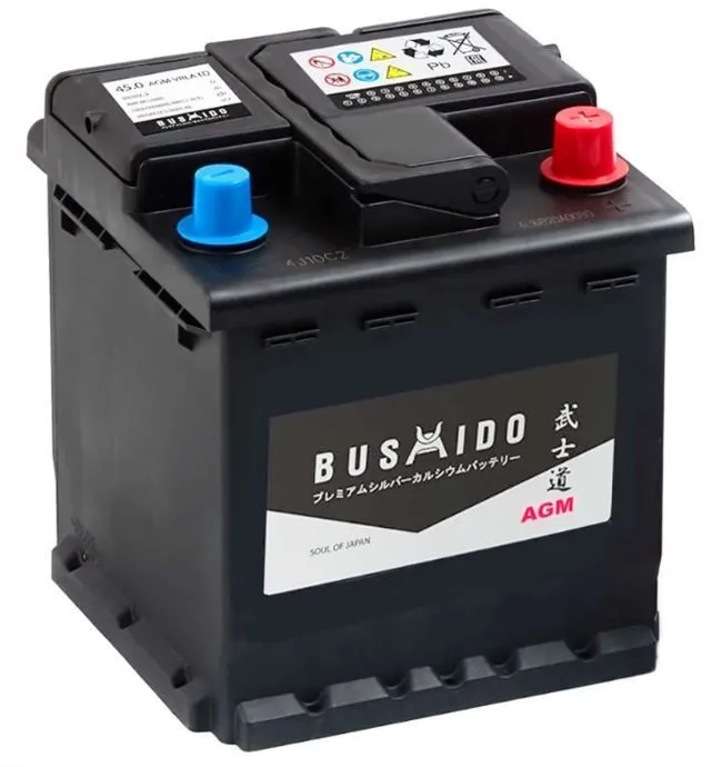 BUSHIDO 45 Ач, пусковой ток 470 А, производства Южная Корея. Габаритные размеры аккумуляторной батареи составляют 175x175x190 мм по длине, ширине и высоте соответственно. Величина пускового тока 470 А согласно европейскому стандарту, ёмкость батареи составляет 45 Ач, тип токовывода - стандартные клеммы.