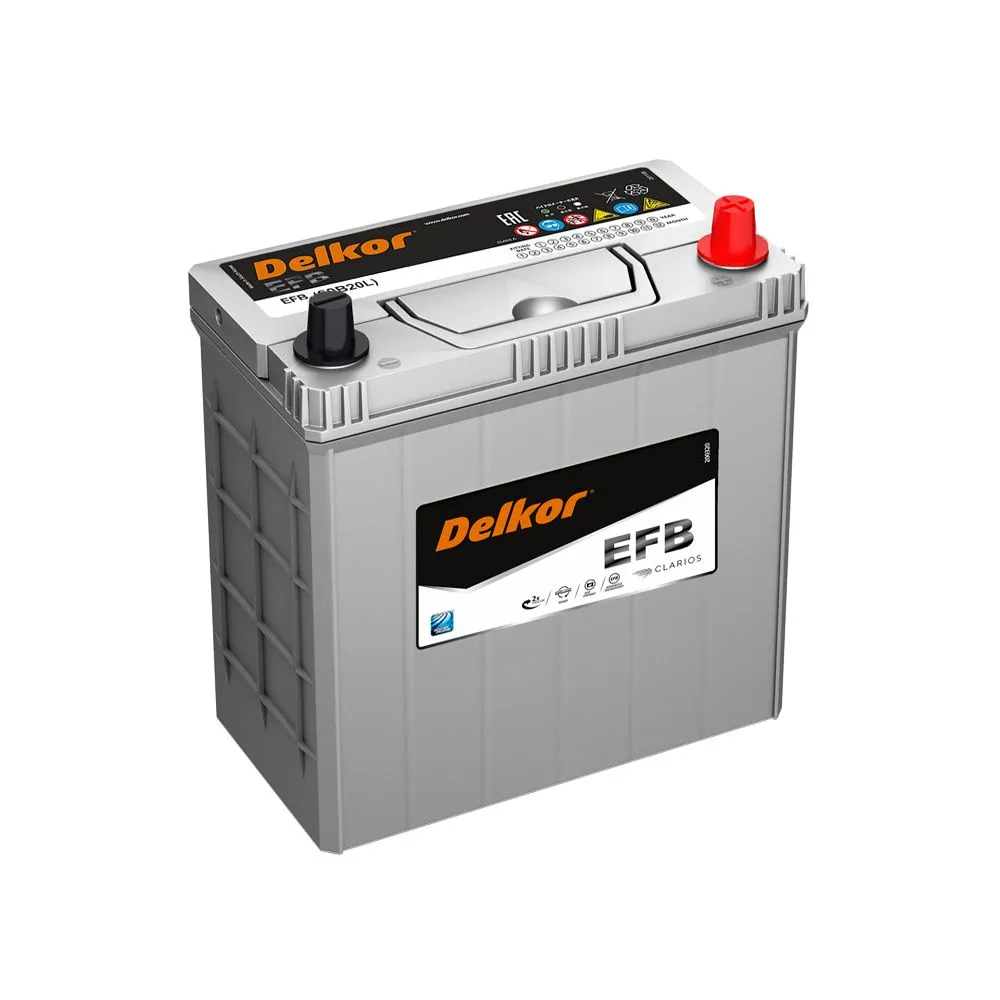 Delkor 40 Ач, пусковой ток 400 А, производства Южная Корея. Габаритные размеры аккумуляторной батареи составляют 196х129х227 мм по длине, ширине и высоте соответственно. Величина пускового тока 400 А согласно европейскому стандарту, ёмкость батареи составляет 40 Ач, тип токовывода - тонкие клеммы.