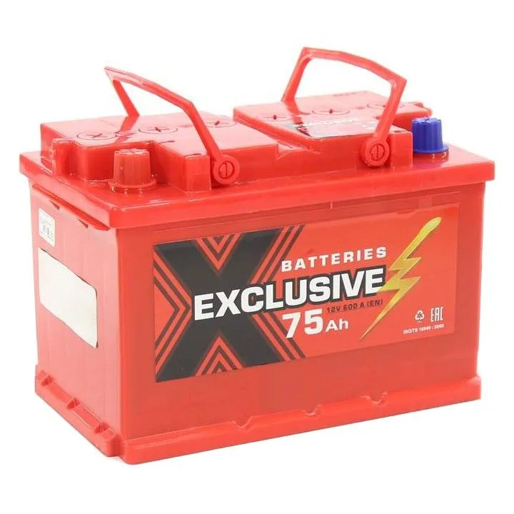 Exclusive 75 Ач, пусковой ток 590 А, производства Казахстан. Габаритные размеры аккумуляторной батареи составляют 275х175х190 мм по длине, ширине и высоте соответственно. Величина пускового тока 590 А согласно европейскому стандарту, ёмкость батареи составляет 75 Ач, тип токовывода - стандартные клеммы.