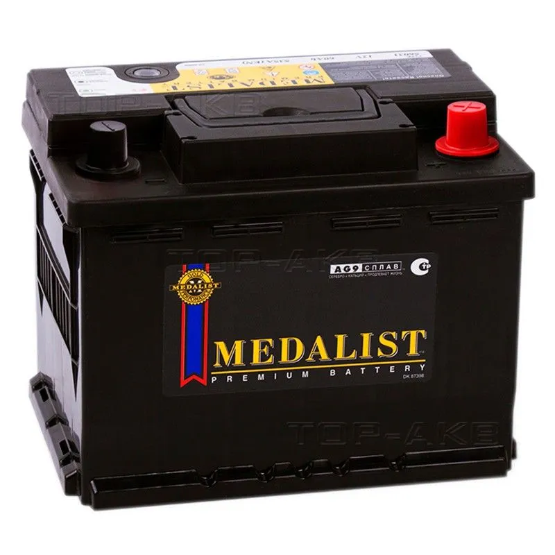 Medalist 60 Ач, пусковой ток 540 А, производства Турция. Габаритные размеры аккумуляторной батареи составляют 242x175x190 мм по длине, ширине и высоте соответственно. Величина пускового тока 540 А согласно европейскому стандарту, ёмкость батареи составляет 60 Ач, тип токовывода - стандартные клеммы.