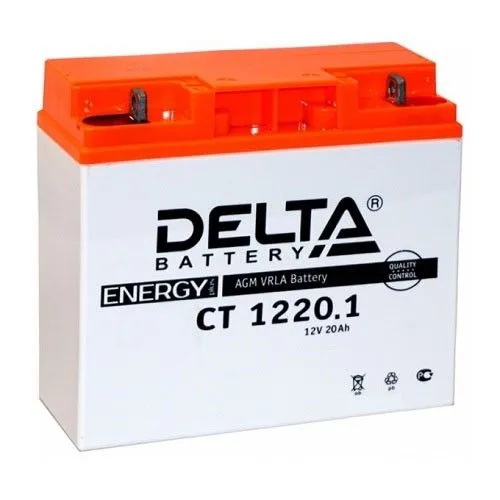 Delta CT 20 Ач, пусковой ток 260 А, производства Китай. Габаритные размеры аккумуляторной батареи составляют 187x77x167 мм по длине, ширине и высоте соответственно. Величина пускового тока 260 А согласно европейскому стандарту, ёмкость батареи составляет 20 Ач, тип токовывода - клеммы под болт.