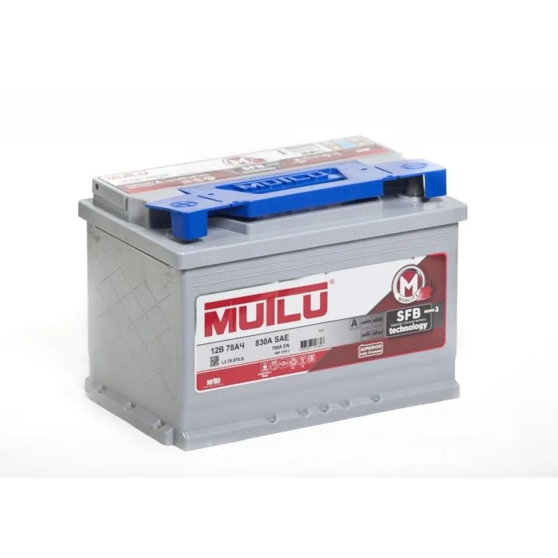 Mutlu SFB M3 78 Ач, пусковой ток 780 А, производства Турция. Габаритные размеры аккумуляторной батареи составляют 278х175х190 мм по длине, ширине и высоте соответственно. Величина пускового тока 780 А согласно европейскому стандарту, ёмкость батареи составляет 78 Ач, тип токовывода - стандартные клеммы.