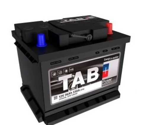 Tab Polar 36 Ач, пусковой ток 330 А, производства Словения. Габаритные размеры аккумуляторной батареи составляют 207x175x175 мм по длине, ширине и высоте соответственно. Величина пускового тока 330 А согласно европейскому стандарту, ёмкость батареи составляет 36 Ач, тип токовывода - стандартные клеммы.