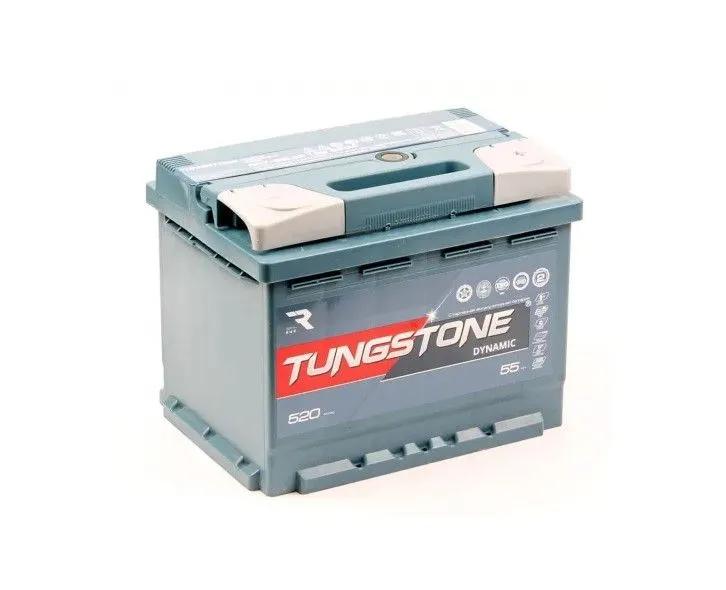 Tungstone 55 Ач, пусковой ток 520 А, производства Россия. Габаритные размеры аккумуляторной батареи составляют 242x175x190 мм по длине, ширине и высоте соответственно. Величина пускового тока 520 А согласно европейскому стандарту, ёмкость батареи составляет 55 Ач, тип токовывода - стандартные клеммы.