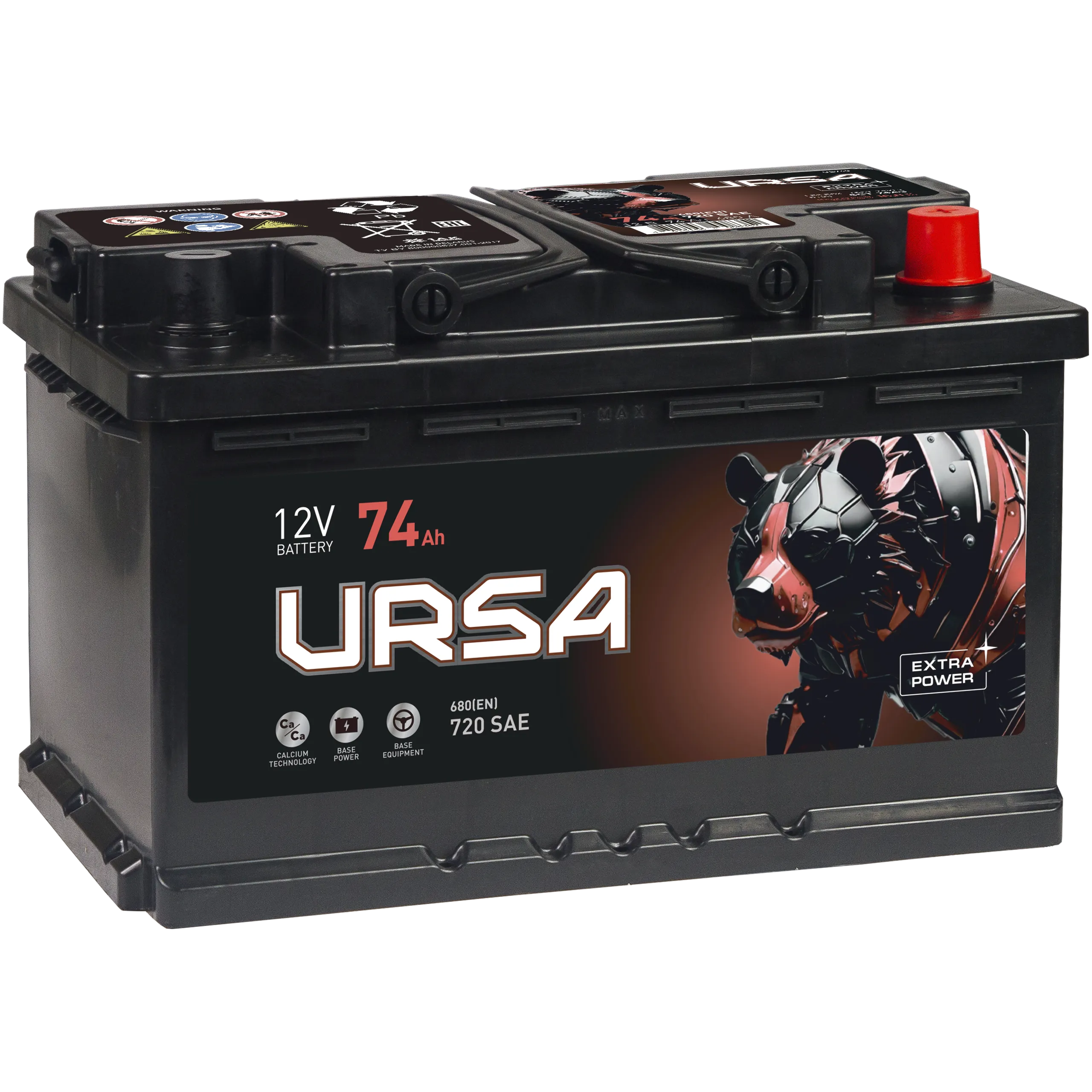 URSA 74 Ач, пусковой ток 720 А, производства Беларусь. Габаритные размеры аккумуляторной батареи составляют 278х175х175 мм по длине, ширине и высоте соответственно. Величина пускового тока 720 А согласно европейскому стандарту, ёмкость батареи составляет 74 Ач, тип токовывода - стандартные клеммы.
